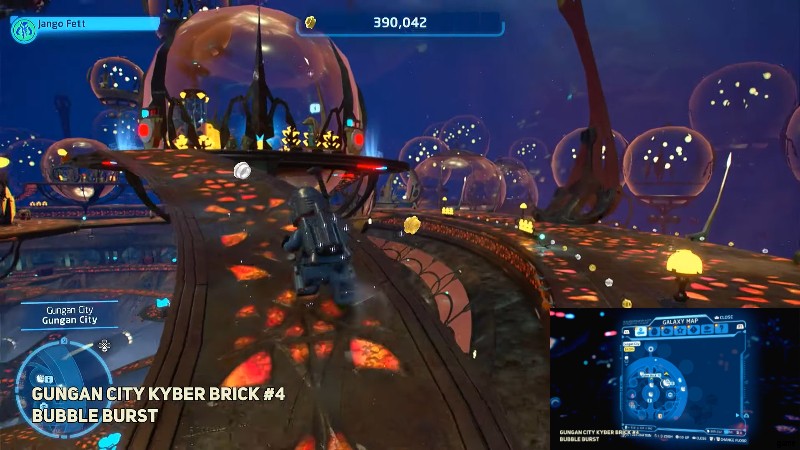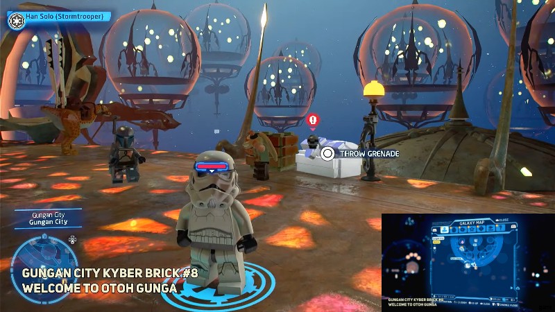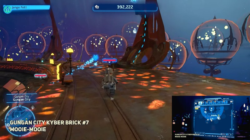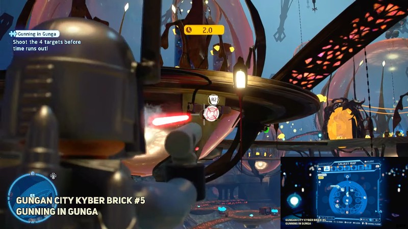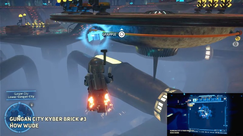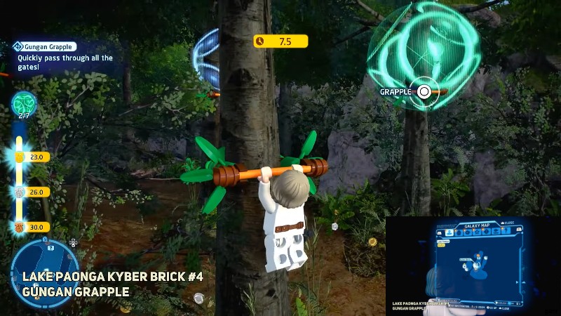 次の Kyber Brick では、Gungan グラップルと呼ばれるタイム チャレンジを完了する必要があります。ルーク・スカイウォーカーのようなグラップリング フックを使用できるキャラクターを使用し、23 秒以内に各ゲートにグラップルして Kiber ブロックを受け取ります。