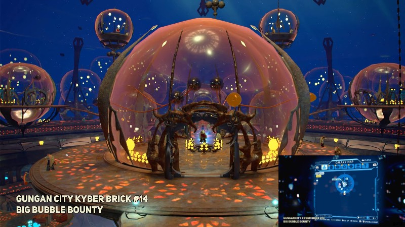 このレンガを集めるには、プレイヤーはグンガン シティのバブル ルームの 1 つの周りにある一連のスイッチを点灯させて、部屋のロックを解除する必要があります。プラットフォームの下を見るとスイッチの順序がわかるので、裏返す前に下を見てスイッチの順序を覚えておきましょう。完了したら、中に Kiber Brick を集めることができます。