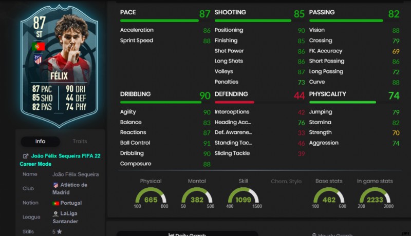 驚いたことに、Joao Félix POTM カードは FIFA 22 でポルトガル人の最高レートのアイテムではありません。89 OVR の Adidas Numbers Up バージョンより 2 OVR 遅れています。