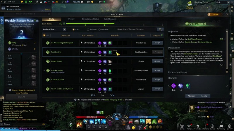 Pest Control Una's Task Daily Quest とそれに隣接する Roster Quest は、Tempest Seas の Freedom Isle の北にある Blackfang's Den で発生します。 Lost Ark でクエストを完了する方法と、完了時に獲得できる報酬は次のとおりです。