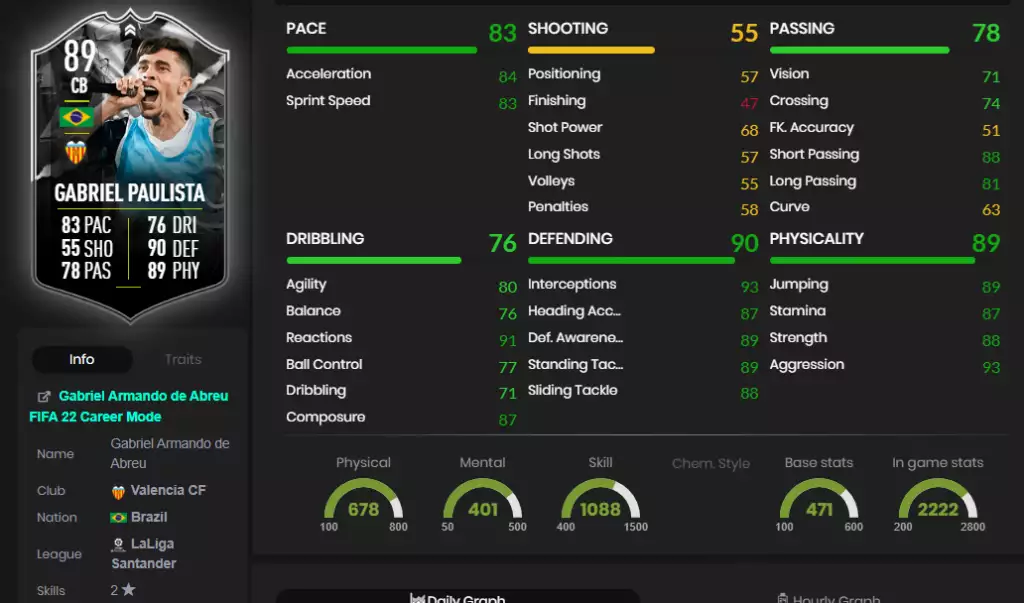 当然のことながら、彼は 93 インターセプト、87 ヘディング精度、89 防御意識、89 スタンディング タックル、88 スライディング タックル、89 ジャンプ、88 ストレングスなどの防御統計に優れています。
