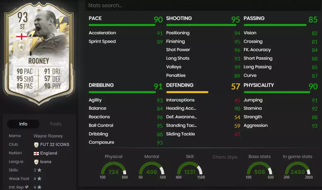 FIFA 22 ウェイン・ルーニー アイコン SBC - 統計