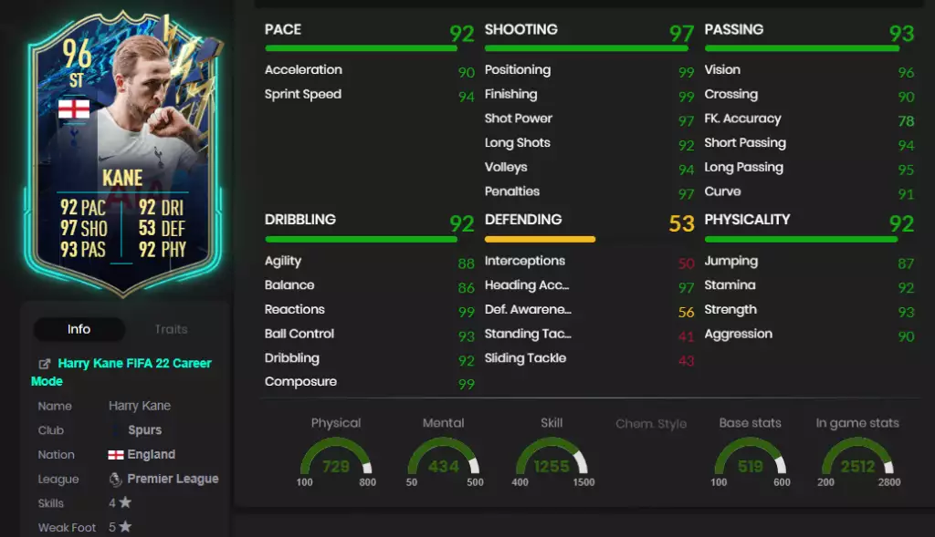 FIFA 22 ハリー・ケイン TOTS - スタッツ