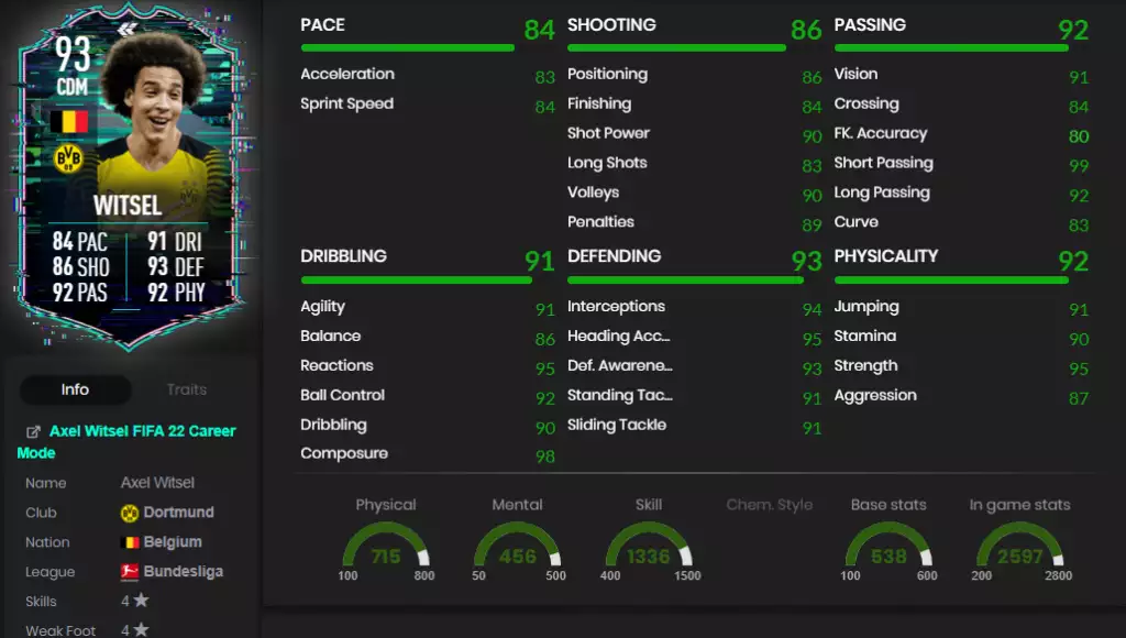 FIFA 22 アクセル ヴィツェル フラッシュバック - スタッツ