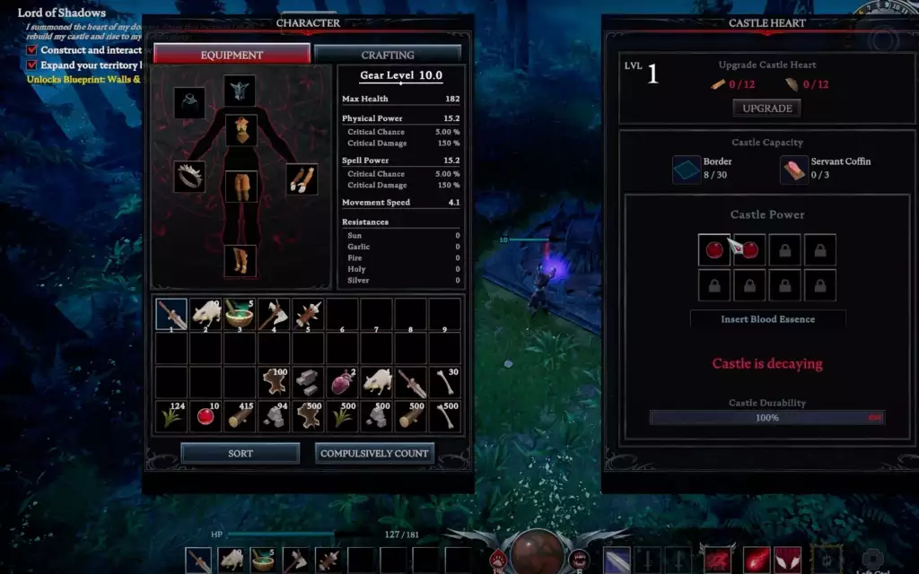 ありがたいことに、Castle Decay はすぐには発生しません。その間に、ゲームの世界を探索し、リソースを探し、ボスを倒し、任務を完了してから、城に戻って新しいブラッド エッセンスのセットを注入するのに十分な時間があります。キャッスル ハート。