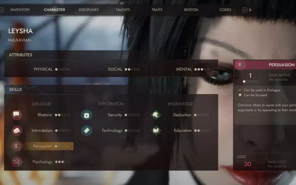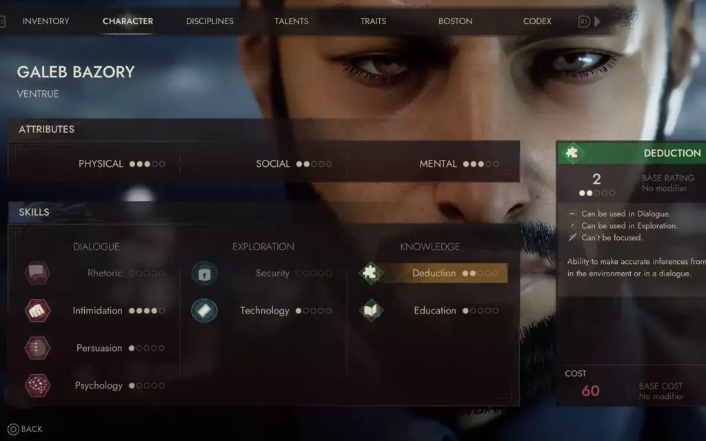Vampire:The Masquerade – Swansong のスキルは 3 つのカテゴリに分類されます。それらは、対話、探求、知識です。