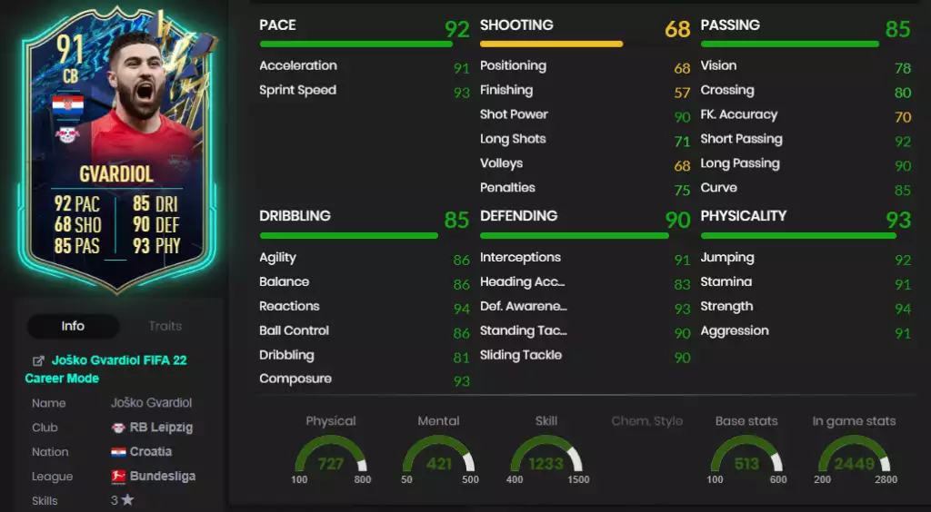 FIFA 22 ヨシュコ グヴァルディオル TOTS - スタッツ