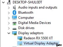 - 3. 「Virtual Display Adapter」をクリックし、強調表示されたら、ポインターを上部の赤い十字に移動します。これはアンインストール ボタンです。それをクリックすると、削除されます。