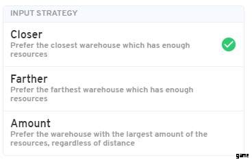 - さらに遠く – 必要な量 (入力容量) を持つ最も遠い建物から引き出されますが、建物は最大入力距離内にある必要があります。 (ガソリン代に注意してください)