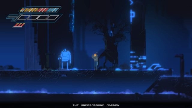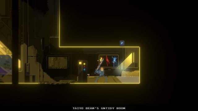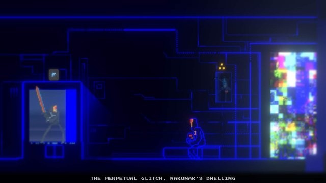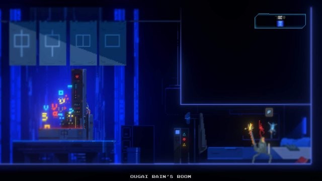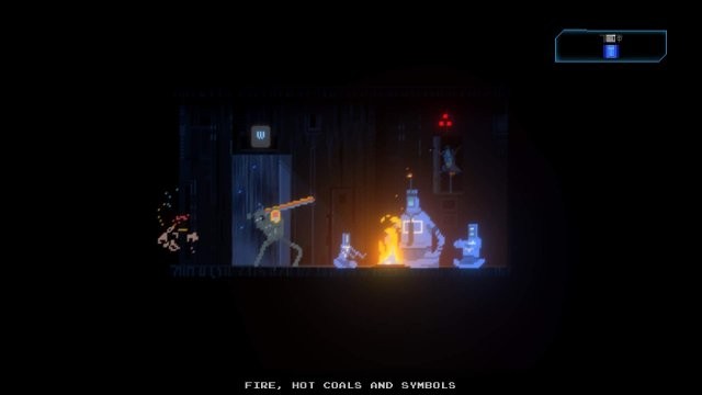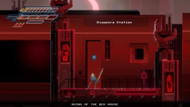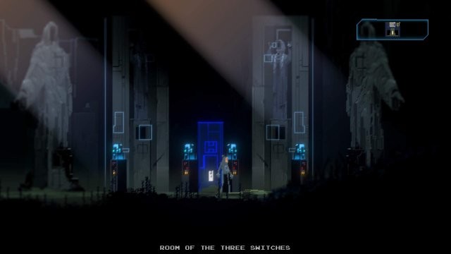 - 前の部屋でスイッチのロックを解除するテクノキーを取得したら、右にジャンプしてチャージします。上部に登れる青っぽいエリアがあります。