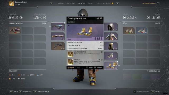 また、Shadow Comet を入手すると、Claymore と置き換わります。