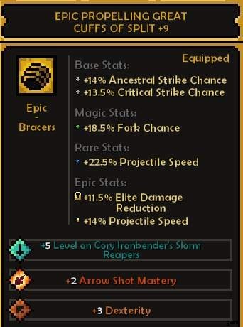 このビルドはさまざまなリーパーで動作するはずです。私が使用するのは Manabender の Primordial Bow です。Arrow Shot で非常に高いマナ コストを達成することができ、大きなダメージ バフが得られます。
