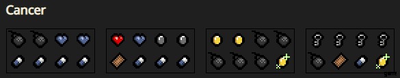 上記のすべての手順を完了したら、キャラクター選択に移動して E を押します。これにより、汚染されたキャラクターという名前の別のキャラクターの群れが表示されます。 Tainted Cain を選択すると、途中で終わりです。Tainted Cain には特別な特徴があります。彼が触れるすべての台座アイテムは消耗品の束に変わりますが、8つ集めることができ、特定の組み合わせでアイテムを作ることができます.各アイテムにはいくつかの組み合わせが付属しています。詳細は後述します。