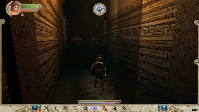 上は、トーチを拾う必要がある入口のすぐ内側にある柱のスクリーンショットです。松明を手に入れたら、武器スロットに装備します。有効期限が切れることはなく、迷宮内のミノタウロスの前に戦うために武器を切り替えることを心配する敵がいないため、迷路を通る長いトレッキングを開始する準備が整いました.