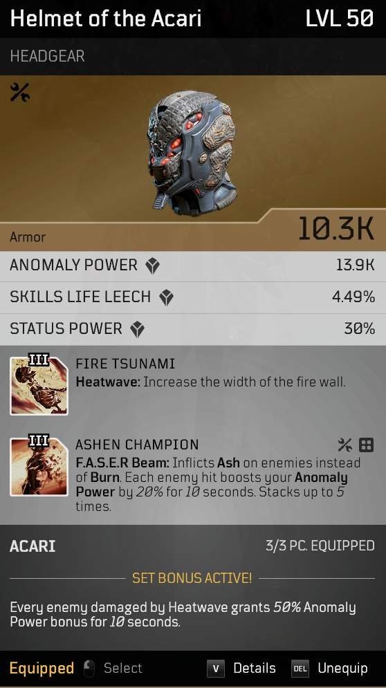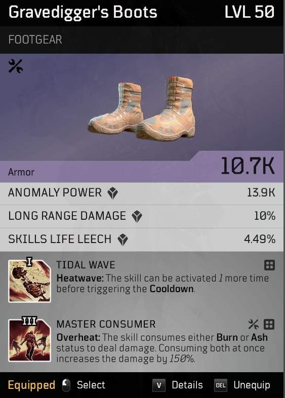 - ファイヤー ツナミ:エンドゲーム ギアの重要な部分。熱波を広げて全員を燃やし、セット ボーナスで 50% の異常パワーを与えます。