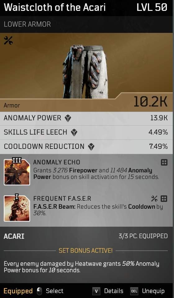 前述のセット ボーナスは、スキルの対象となった敵ごとに、アノマリー パワーを 50% 増加させます。