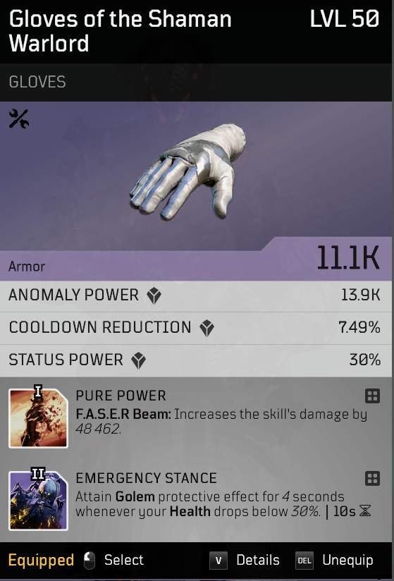 - ダメージ吸収材:必携です。アーマーが約50k増加し、抵抗が10%増加します。アーマーは、アイテム レベルに応じてこの mod スケールから得られます。とても良いです。