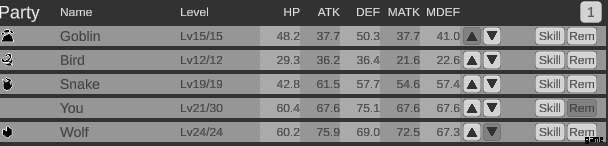 例えばパーティーにノルンと MC しかいない場合、ノルンは MC のステータスの半分になります。