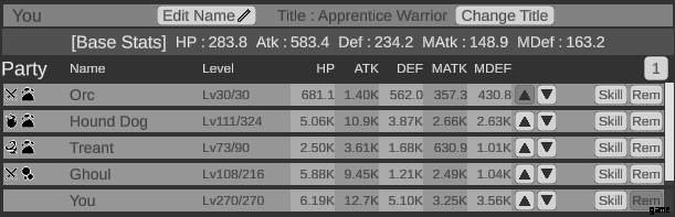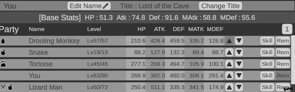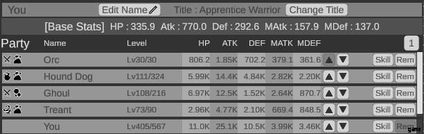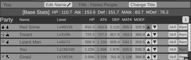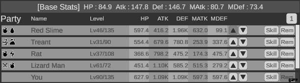 - パーティー メンバーのステータスは、上部の [基本ステータス] に何らかの係数 (ツールチップに表示) を掛けて決定されます