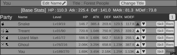 - パッシブ スロット – スネークと (現在最大レベル) オーク、7 番目のパーティ スロットがない場合はスネークをドロップします。