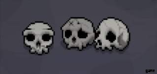 このフロアには、マークされた頭蓋骨 (少し暗い色で、小さな x が付いています) が常にあります。これを破壊すると、常に愚か者カードがドロップされ、使用すると部屋からテレポートします。頭蓋骨の例を次に示します (中央のもの):