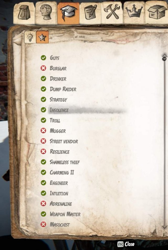 スキルだけに頼るのではなく、生き残るための真の特典を学ぶようになると、これは本当の取引です。特典は、昼夜を問わず生活を後押しし、一般的な助けとなるだけでなく、来る厳しい冬に備えます。特典はさまざまで、最近多くの特典が追加されました。毎回士気の低い人から盗む方法を学び、トレンチ コートを着た男がストリート ベンダーの特典を手に入れるように、グッズをもっと売りたい!行きたい選択肢は無限大です。大酒飲みになるか、エンジニアの特典で物を修理するか、単に物で人を殴るのが好きかもしれません… そのための特典もあるので心配しないでください。ウェポンスミスがあなたをカバーします。すべての特典について詳しく説明することはしません。皆さんにもそれらを発見してもらいたいからです!