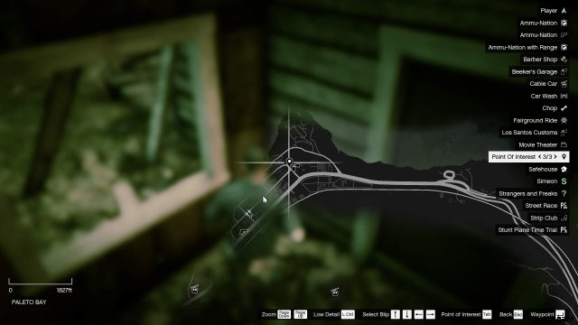 Paletto Bay Los Santos Customs ショップの裏には老朽化した家屋があります。手紙のスクラップは、建物の裏にある泥の部屋の中にあります。