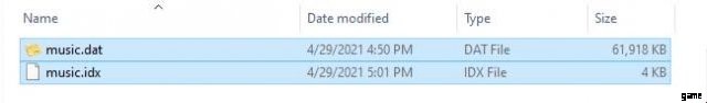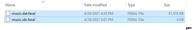 music.idx.feral と music.dat.feral をコピーします。それらを新しく作成したサウンド フォルダに貼り付けます。
