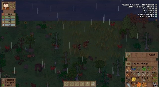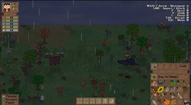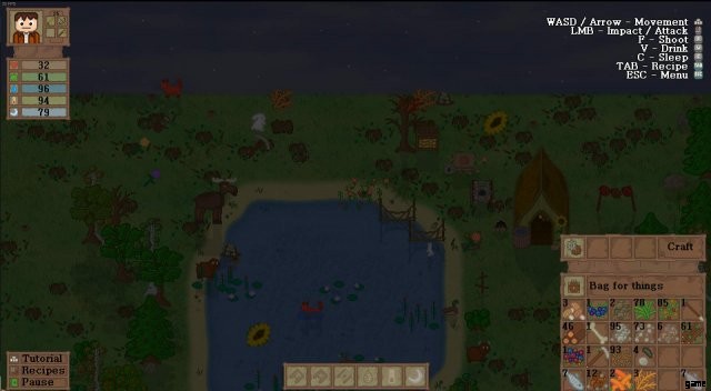 - 必需品を作成したら、武器を作成してみてください。剣、つるはし、斧が優先。夏に開始する場合は、1 ~ 2 個の漁網を作成し、水域に配置します。調理済みの魚は+20の空腹を与えるので、もう食べ物について心配する必要はありません.木の素材を使ったクラフトで石炭を入手できます。とにかく、あなたはそれらを過剰に持つでしょう。夏に始める場合は、牛や鹿から肉をとってみてください。