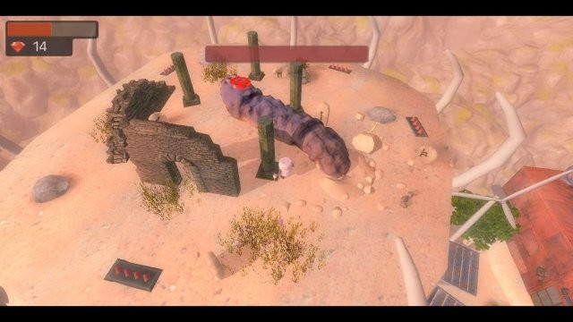 Giant Worm Boss を穴から真っ直ぐ出して左か右に行き、彼の頭を地面に置いて、手に持っている石かサボテンをつかみ、彼の頭の上に投げます。