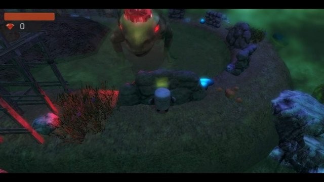 Giant Frog Boss に対して何かの後ろに隠れて、彼が左を見るたびに右に行かなければなりません。