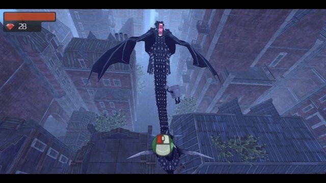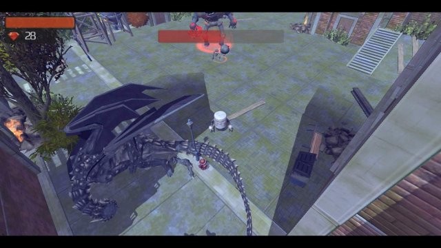 レーザーを当てると巨大なドラゴンボスが飛んで、