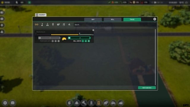 - 商品ウィンドウには、購入用と販売用の 2 つのスライダーがあります。