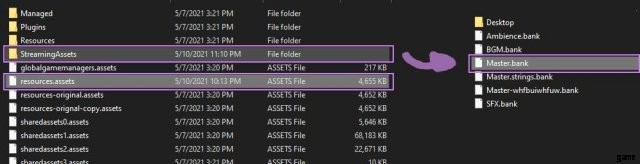 - resource.assets と StreamingAssets/Master.bank の両方のコピーを作成します。これは、ゲームを復元するために必要です。