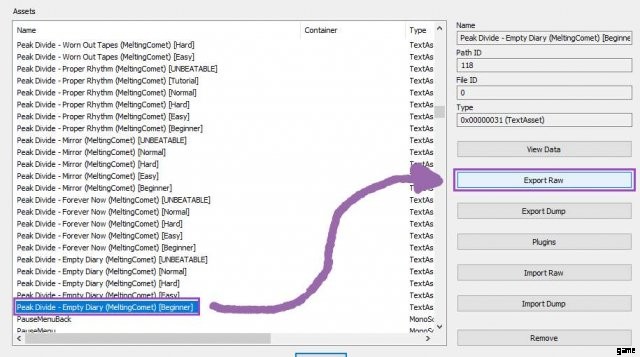 UABE を使用して resource.assets を開き、空の日記 [初心者] の TextAsset を見つけて、raw としてエクスポートし、任意の場所に保存します。