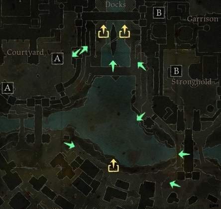 - 「ドック」の抽出ポイントは経験豊富な狙撃兵に有利です。足場にとどまっていれば、報復からある程度安全にしながら、北の中庭にいるほとんどの人を殺すことができます.