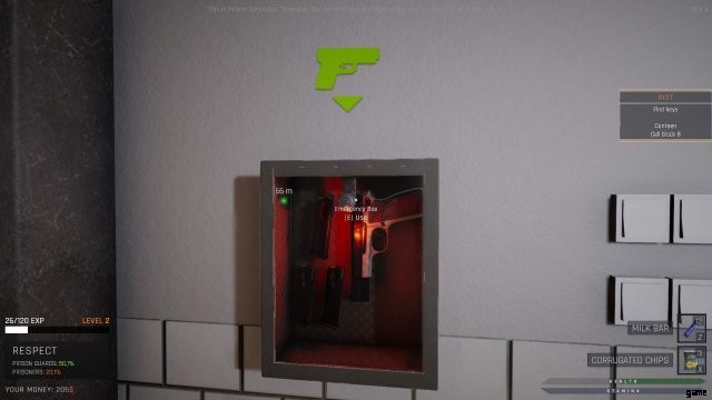 刑務所で許可されていないアイテムまたは呼び出された密輸品を 1 つ見つけて、テイク オプションを選択します。囚人の遺体を捜索するか、独房ブロック B に行って家具を捜索してください。囚人誘導ルーチンでは、ボックスのアイテムを検索し、最後に彼の体のアイテムを検索する可能性が高くなります。パッケージ検索ルーチンでは、小包を検索する必要がありますが、これも良い機会です。