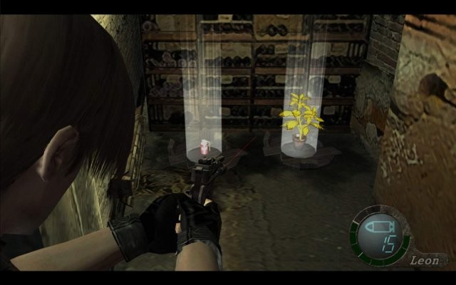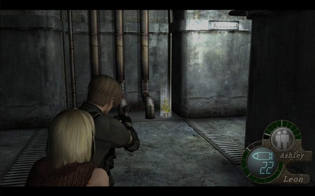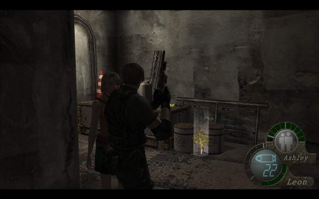 After retriving the keycard to save Ashley from the Iron Maiden, ignore your instinct to immediately turn back to free her. Instead, keep going through the lab and out the door to the apparent dead end. Break open the barrels to find another Yellow Herb. As this is a completely skippable area in the Main Game, don’t forget to stop by.