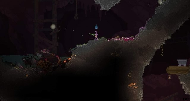- キーボードとマウスでプレイすると、カーソルが上にあるものにはアイテム バーの右側に説明が表示されます。地面、水、火薬。ただし、敵には機能せず、コントローラーを使用しているときはまったく機能しないようです。インベントリ画面を見ているときにコントローラーでできるかもしれない追加情報については、ステータス効果にマウスを合わせることができますが、私は持っていません自分でテストしていません。