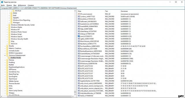 - アイテム ツリーで Endless Horde サブアイテムを選択します。ウィンドウの右側にゲーム レジストリ オプションが表示されます。