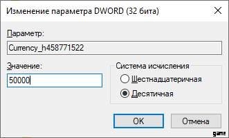 - 開いたウィンドウで、「16 進数」ではなく「10 進数」を選択し、金額を入力します。 50万あれば十分です。 [OK] を押して新しい値を保存します。