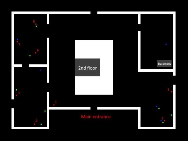 家の中のさまざまなアイテムを示すために、マップにドットを配置しました: