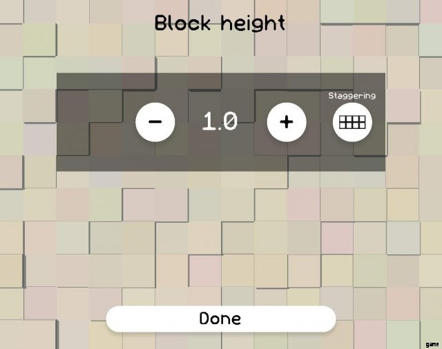 「+」および「-」ボタンを使用して、ブロックの高さを変更します。 「スタガリング」ボタンを押すと、ブロックの高さが交互になり、城のような壁ができます。
