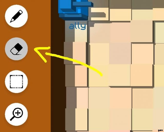 レベルからオブジェクトを削除するには、消しゴムで示される消去モードにする必要があります。消去モードに入るには、画面の左上にある消しゴム ボタンをクリックします。ショートカットとして、E を押して消去モードにすることもできます。