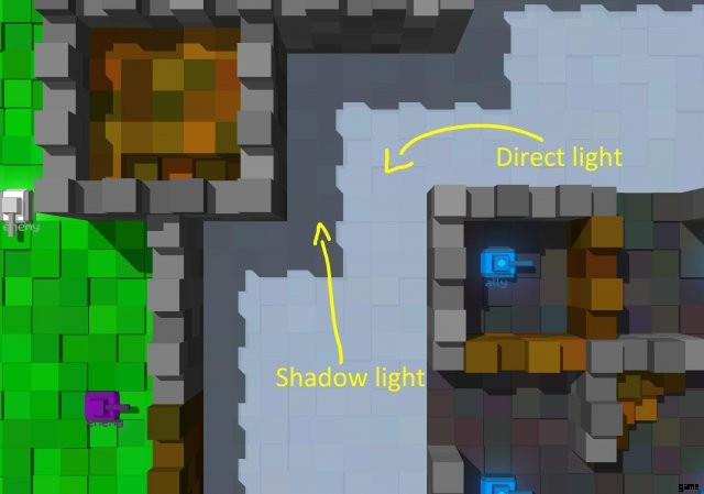 照明はレベルの雰囲気を変えて、特定のムードを与えます。ここには、直接光と影光の 2 つのオプションがあります。