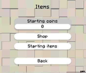 プレイヤーが開始するアイテムと、レベルごとに指定された数の開始コインを持つショップを設定できます。全員に同じアイテムを持ってもらいたい場合はスターティング アイテムを使用し、限られた数のコインから始めてアイテムを賢く選択できるようにしたい場合はショップを使用します。ショップのアイテムは、価格をゼロに設定することで無料にすることができます。指定された 5 つのアイテム バー スロットを超える開始アイテムは追加されません。