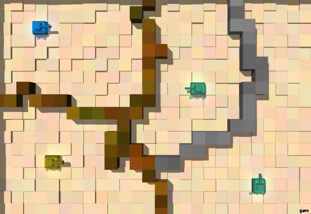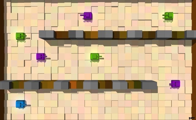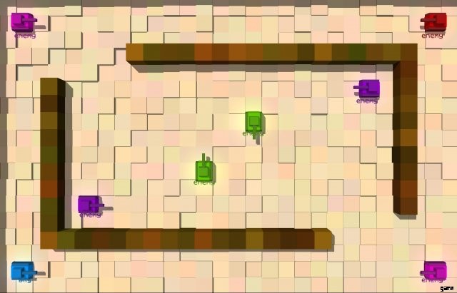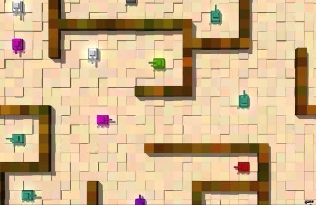 Some tanks (orange, purple, white, black, orangered, maroon, medic, gold) are quite interesting in that they will track down and pursue their enemies. Some of these will use mines to their advantage to get through walls. These tanks make good teammates for the player too because if the player dies they will continue to actively pursue other enemies.