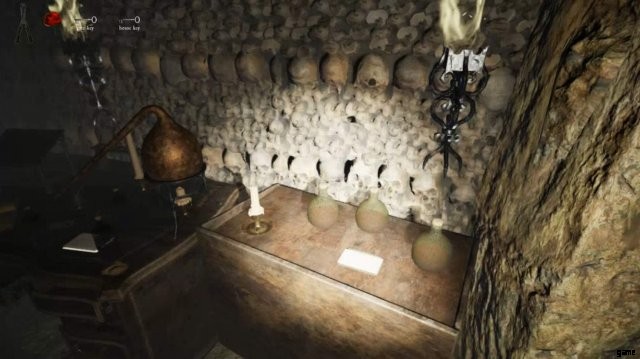 - 家の中をまっすぐ進み、小枝人形の墓場へ。