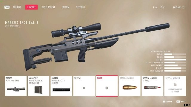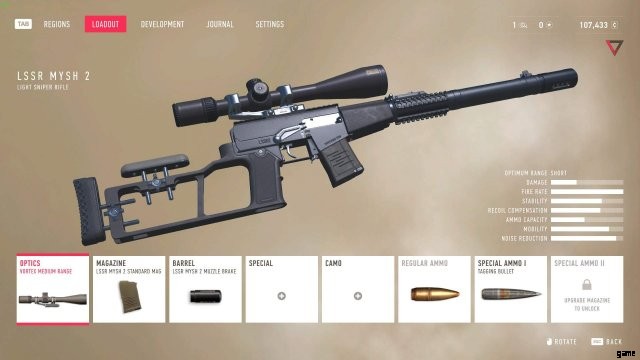 107は間違いなく現在のゲームで最高のライフルであり、ヘビーライフルクラスでは確かにそうです.主な特徴は、すべての専門的な弾薬タイプを使用できることです。つまり、最も重いライフルですが、さまざまな状況に対処できるという点で最も柔軟です。個人的には、Ram-Bow と一緒に実行することをお勧めします。これにより、実行速度の低下が解消されます。また、後の特典のいくつかを使用すると、近接キル後にこのライフルで 2 ~ 3 倍のスプリント速度に達することができます。