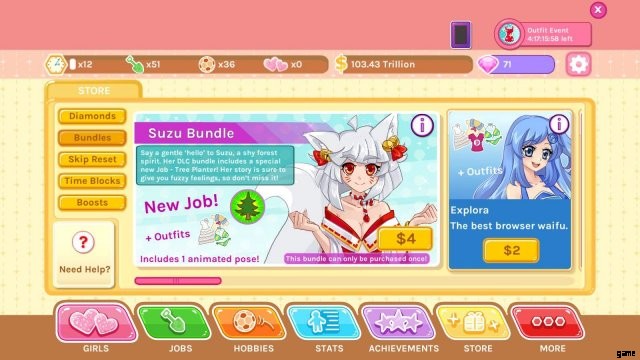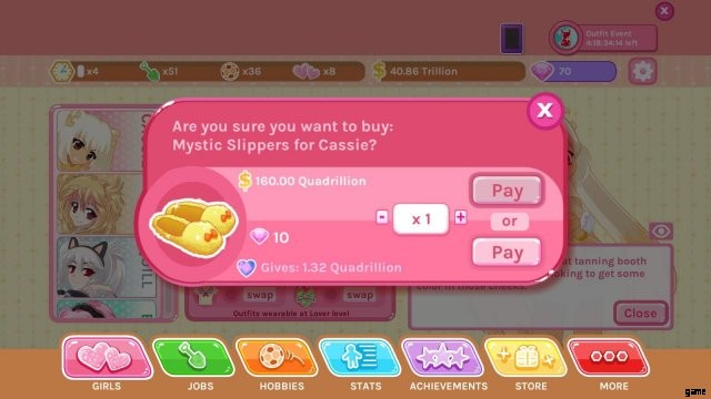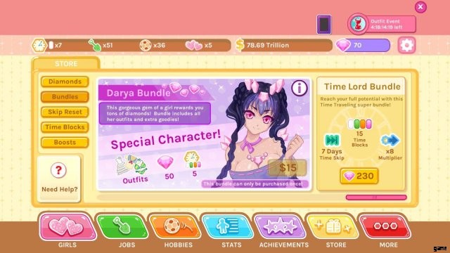このゲームの主なポイントは、ワイフに会い、彼らを口説くことです。そのため、このゲームでお金を使う最善の方法の 1 つは、新しい女の子を口説くことです。バンドル ガールには、仕事、スピード デート、Darya の場合はダイヤモンドなどのボーナスが付属していますが、これらはすべて、最も重要な部分である、口説き、一緒に時間を過ごすための新しいワイフに次ぐものです。